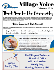 The February issue of the Village Voice has information about a Community Supper, the Delburne Community Support Grant, volunteer opportunities, and events going on around the area.